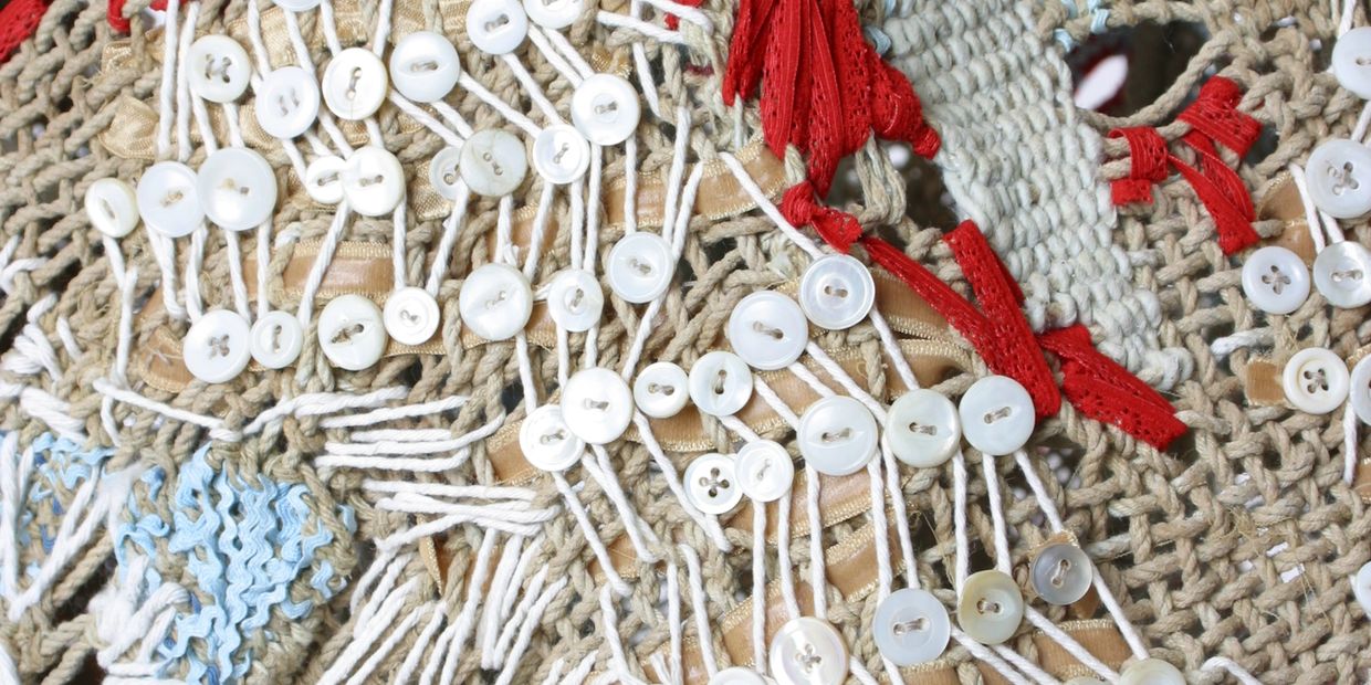 Critique: "Everything is provided, replaced, mended before its loss is registered. In these works in the sewing of hundreds of buttons, thousands of ribbons, there is an acknowledgement of those endless tasks."